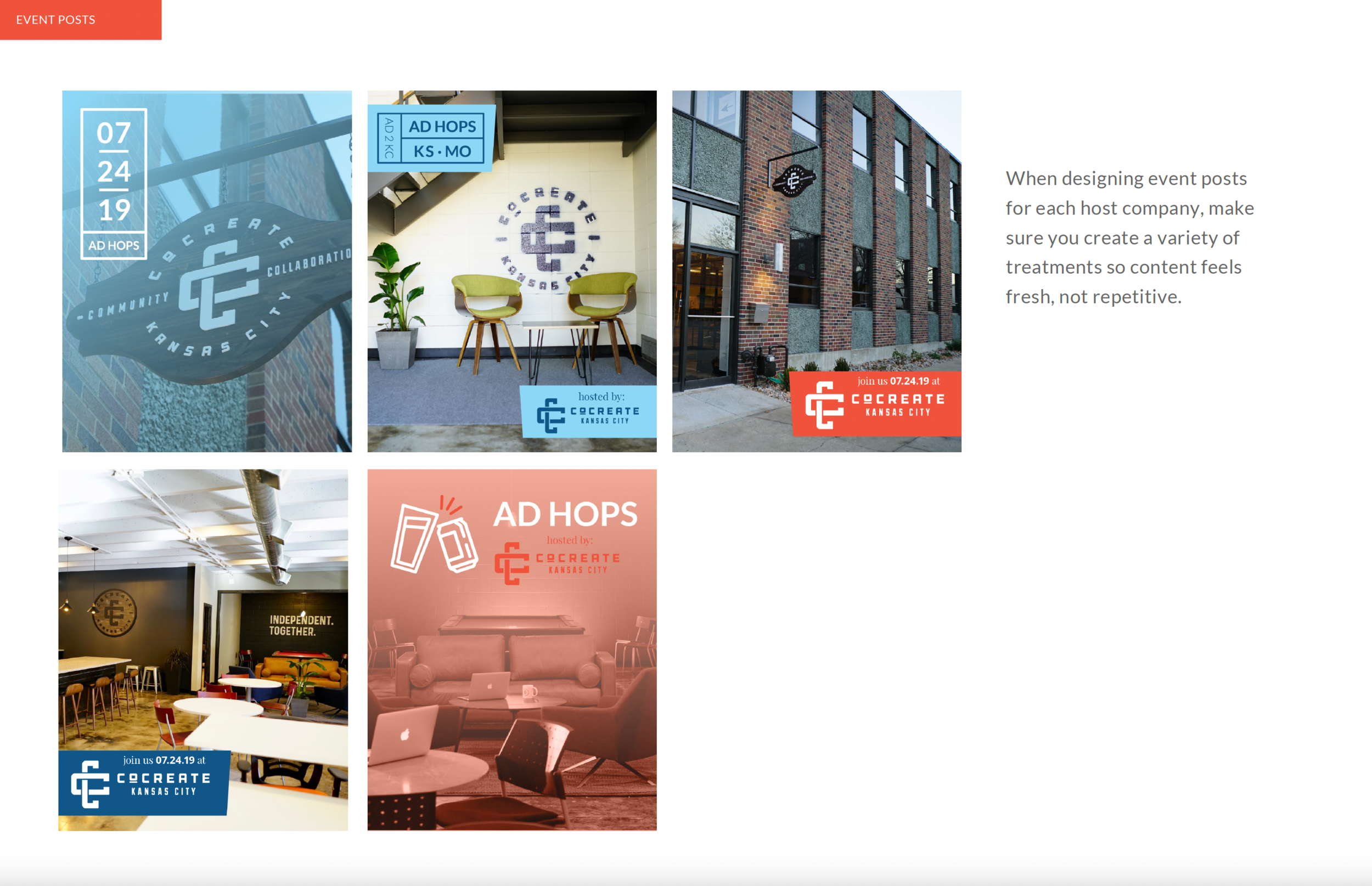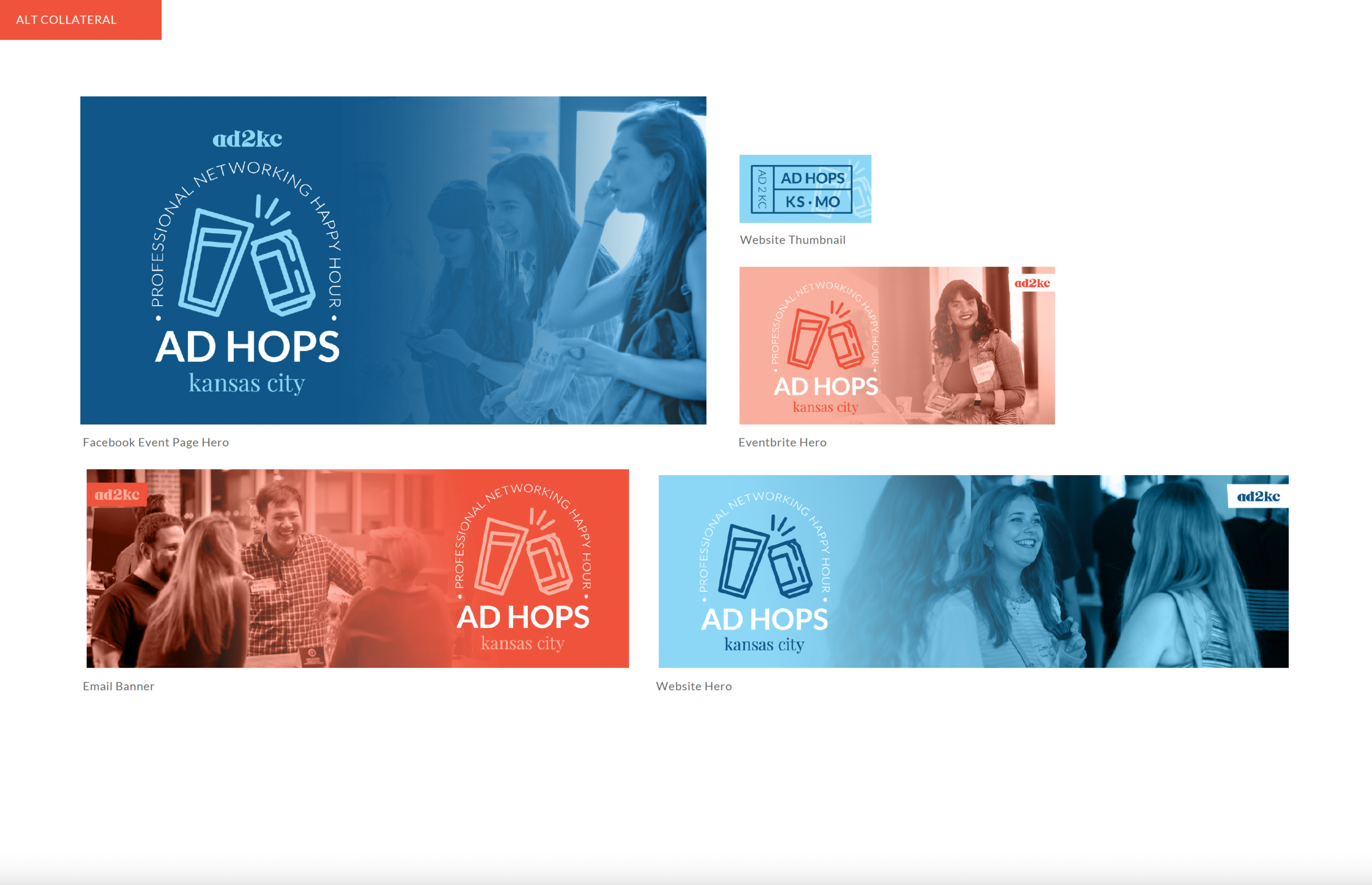 For this project I created an updated branding tool kit (including new logo, icons, type treatments and colors) as well as a style guide for future volunteers to reference when creating graphics for upcoming Ad Hops events.